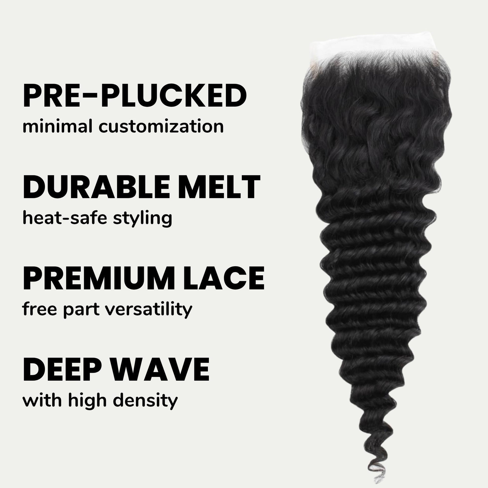 Made with 100% human hair, this closure blends effortlessly with our Deep Wave Bundles (sold individually or in bundle deals), giving you bold, bouncy curls with a flawless, natural-looking hairline.