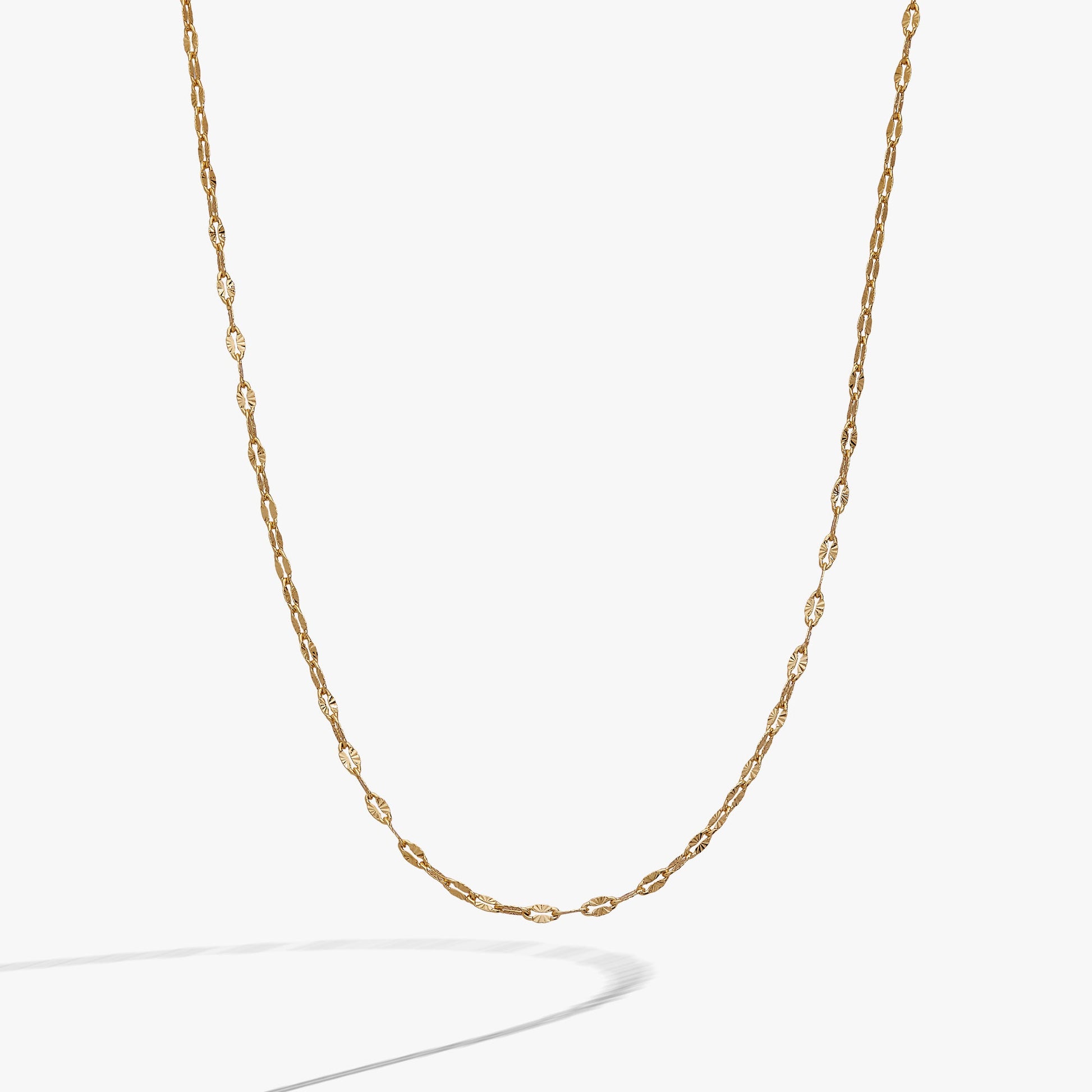 This Faceted Lip Chain Necklace brings a dose of personality to your jewelry collection. The faceted design catches light beautifully, adding dimension and texture to any necklace stack or worn solo for a bold statement. Whether you're celebrating the season of giving or treating yourself, this style is versatile and stylish. Mix and match with your favorite layering pieces for endless combinations, or let it shine as your signature accessory.