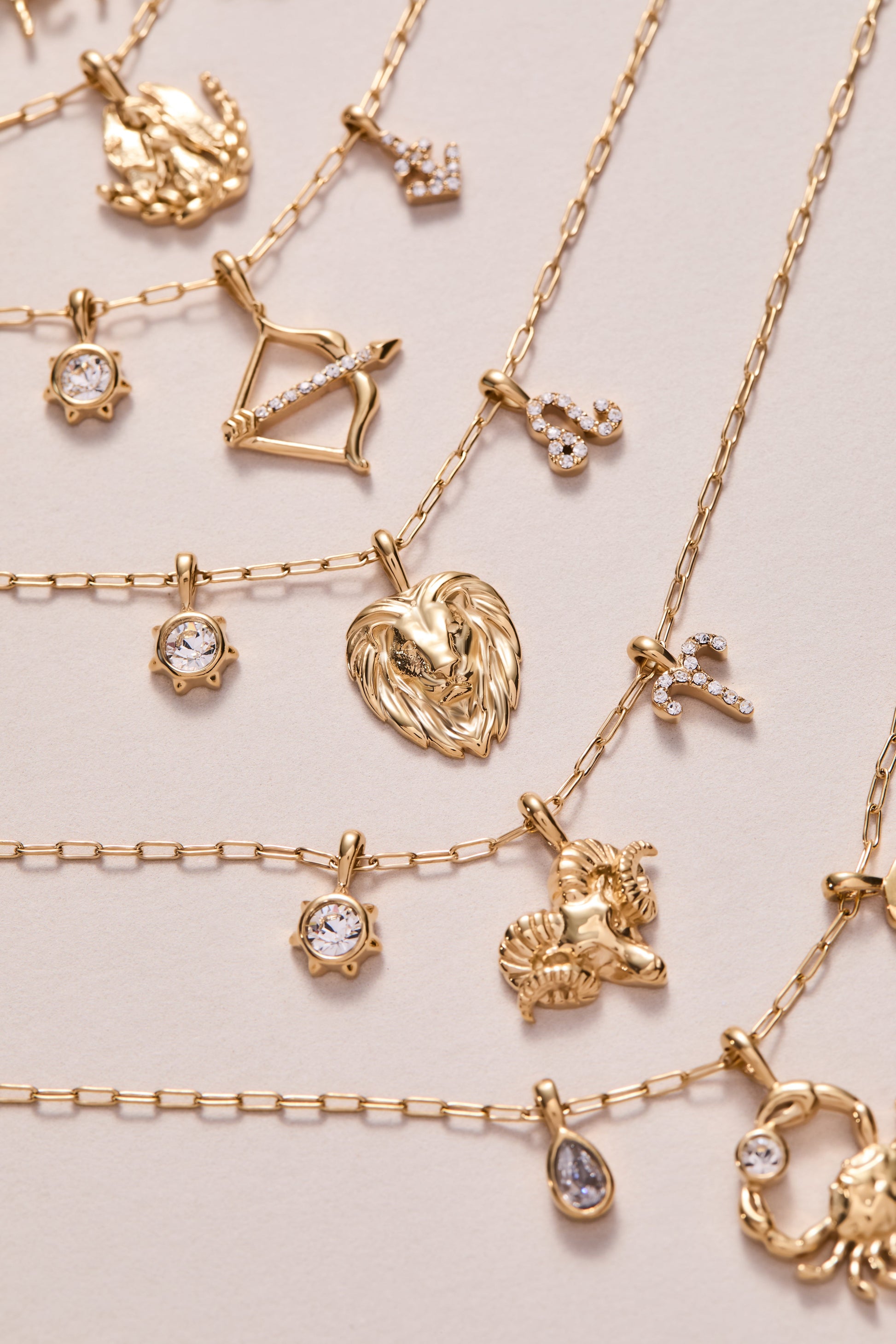 Celebrate your celestial identity with this refined zodiac necklace, featuring a trio of meaningful charms in gleaming gold-plated stainless steel. The centerpiece showcases a crystalline Sagittarius symbol rendered in dimensional detail, accompanied by an intricately modeled bow and arrow adorned with sparkling pave stones. A delicate water element charm, set with a pear-shaped crystal that captures light like a dewdrop, completes the composition. Finished with a signature Alex and Ani star station along the chain, this piece balances understated elegance with luminous detail—versatile enough to layer or wear as a standalone statement.